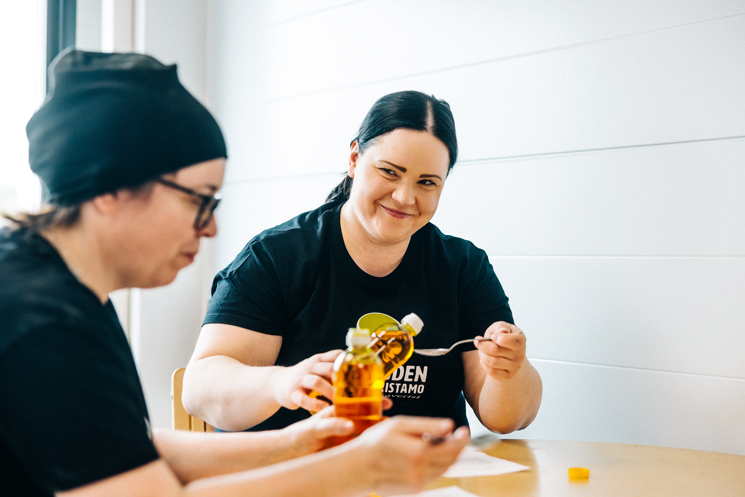 Toimitusjohtaja Hanna Yli-Kuha ja tuotevastaava Hanna Ala-Seppälä esittelevät Alavuden Öljynpuristamon tuotteita. Kuva: Tuukka KivirantaYritys hyödyntää sataprosenttisesti kotimaista, viljelijään asti jäljitettävissä olevaa rypsiä.