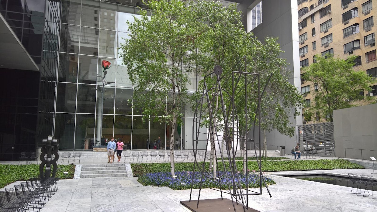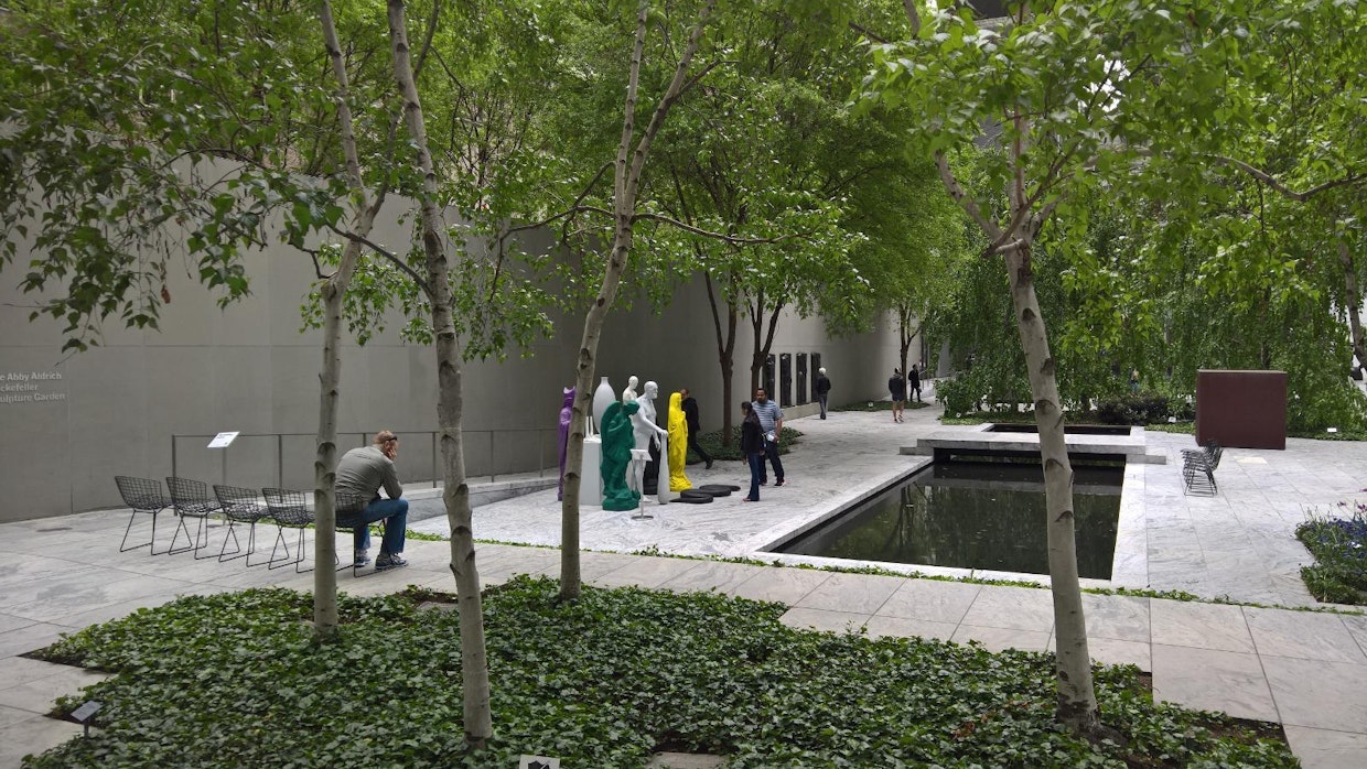 Ensimmäisenä valkorunkoisiin kaunottariin törmää huippunykyaikaisen, lasia ja betonia huokuvan Modernin taiteen museon MoMan avaralla pihalla. Siellä kasvaa kookkaiden veistosten, penkkien, kukkien ja vesialtaiden keskellä ihka eläviä koivuja.