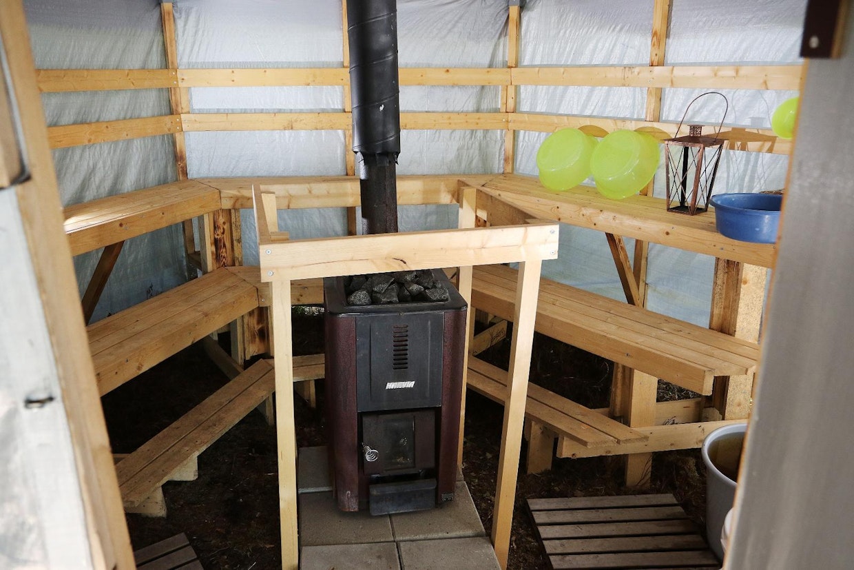7. Telttasauna. Aina ei tarvita hienouksia: pressulla ja kuusisahatavaralla voi saada hyvät puitteet ilmaville löylyille. Ohjeet rakentamiseen löydät MT:n artikkelista.