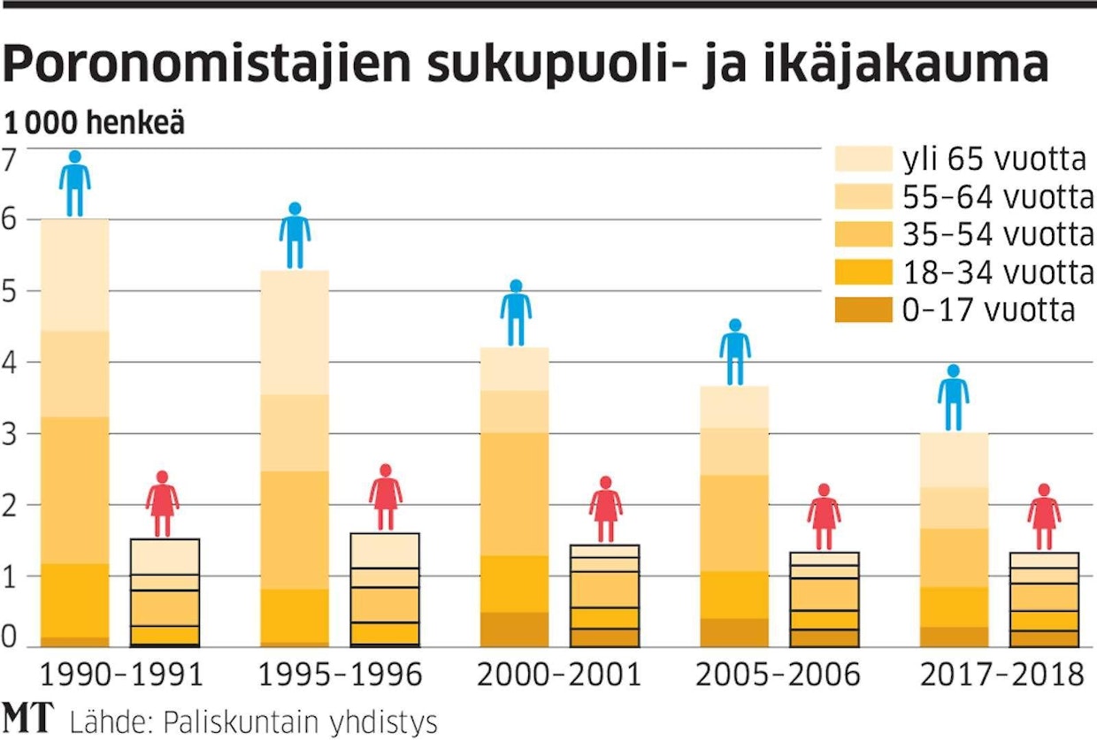 Lisäksi 2000-luvun alussa poronomistajiksi ilmestyivät alle 17-vuotiaat naiset, joita aiemmin ei tilastoissa näkynyt juuri lainkaan.