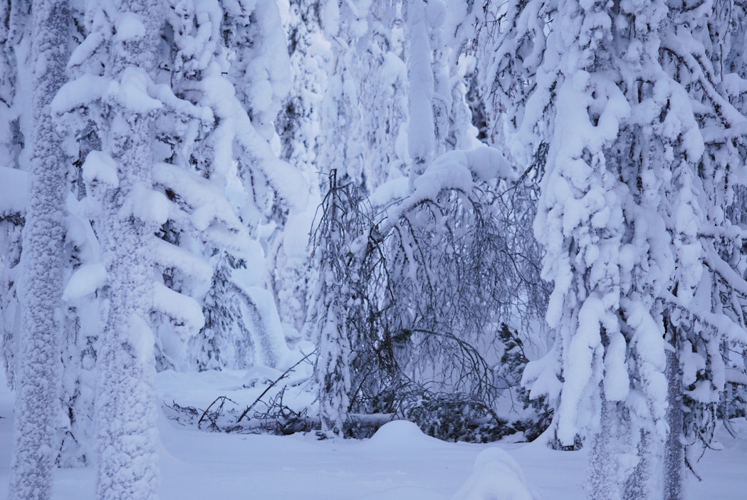 Lunta voi kertyä jopa tuhansia kiloja yhteen kuuseen – raskas tykky katkoo nyt mäntyjä Lapissa