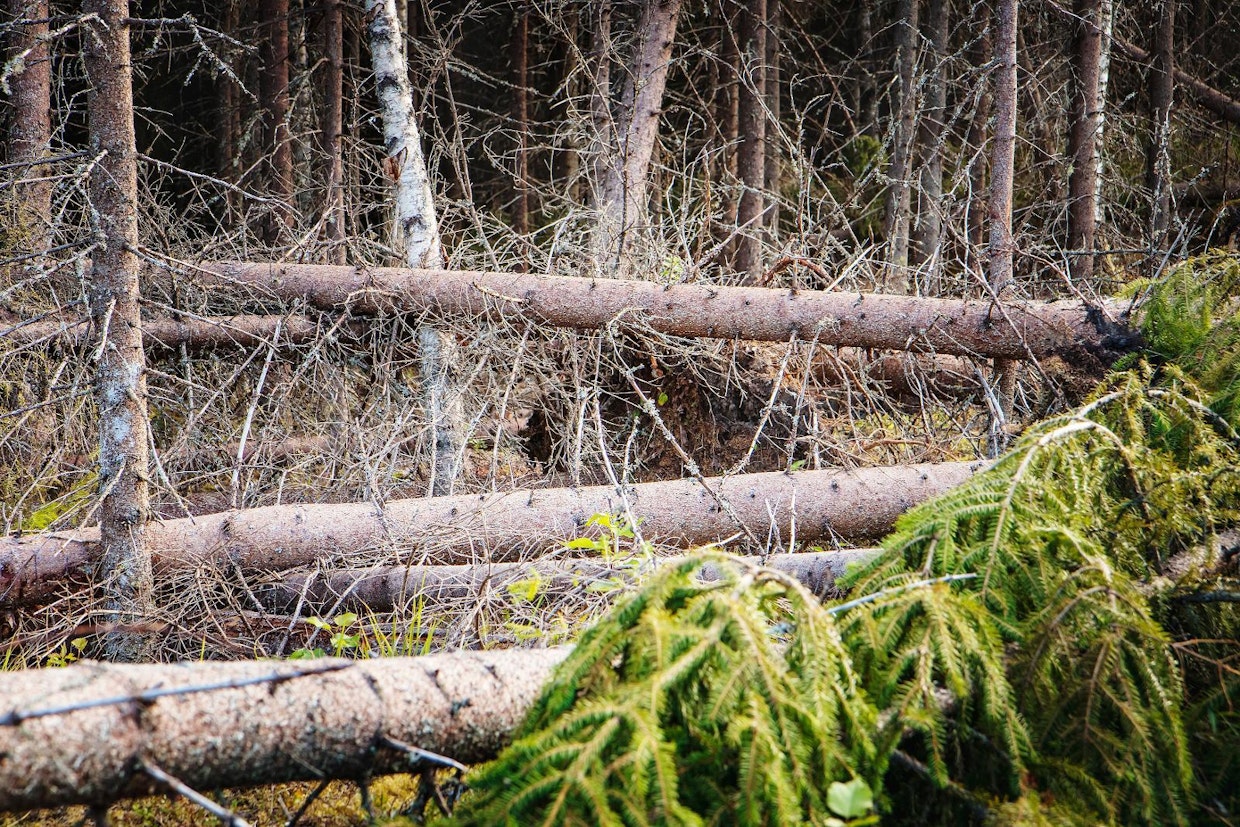 Metsänomistajalla on kesäkuukausina aikaa vain muutamia viikkoja korjata myrskyn kaatamat tai muuten vaurioituneet kuuset pois, jos hän aikoo maksimoida puun myyntitulot ja minimoida ympäröivän metsän tuhot. Kuva: Lari LievonenEnnätyksellinen hellekesä on ollut ihanteellinen kuusiin iskeytyvän kirjanpainajan lisääntymiselle. Tuhojen ehkäisyn kannalta kesä on ollut metsänomistajille vaikea.