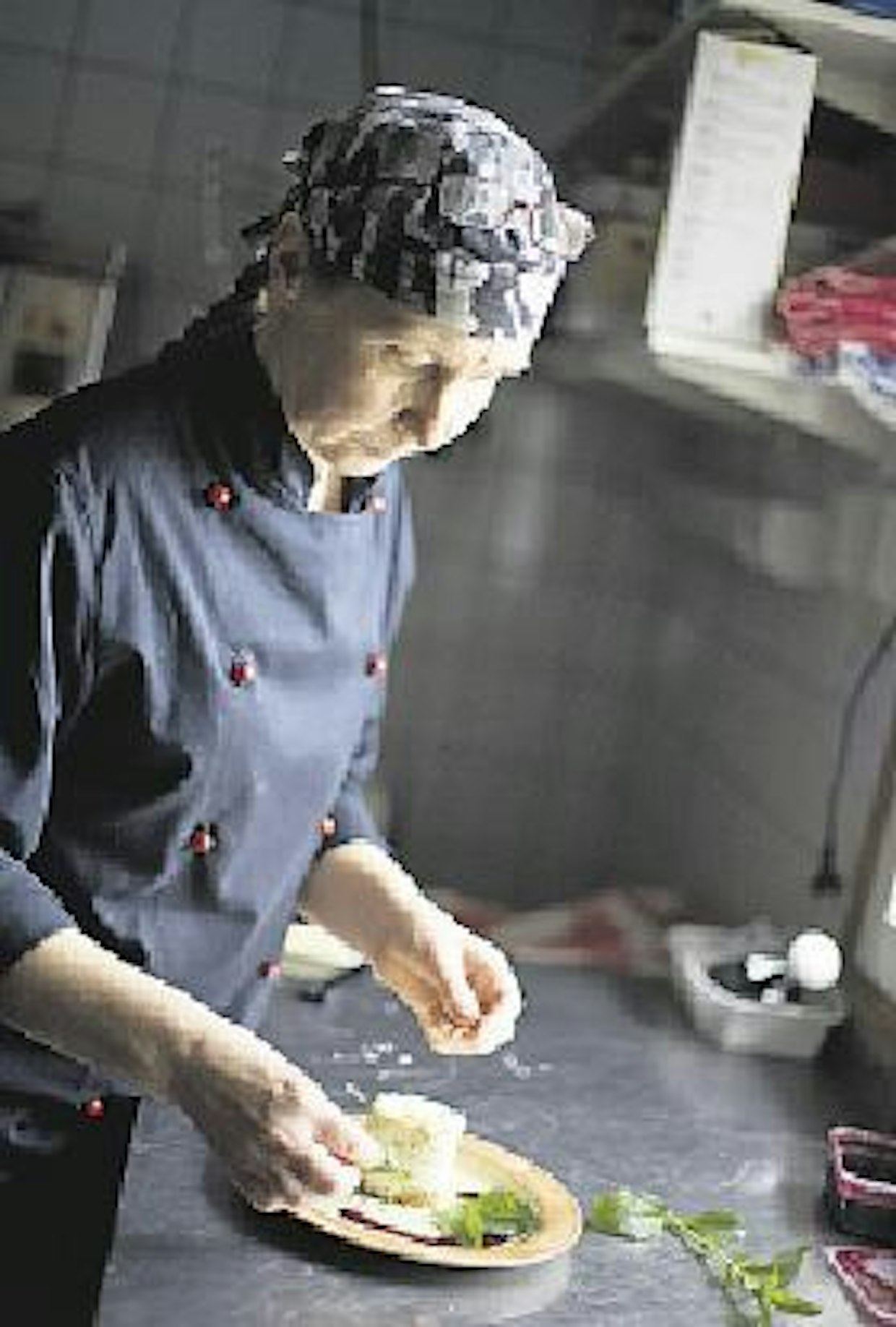Ravintolan ruokalista syntyy emännän ja kokin yhteistyönä. ”Minä keksin mahdottomia ideoita, joita syötän perheelle. Merja miettii, voiko saman valmistaa 30 hengelle”, Palonen nauraa.