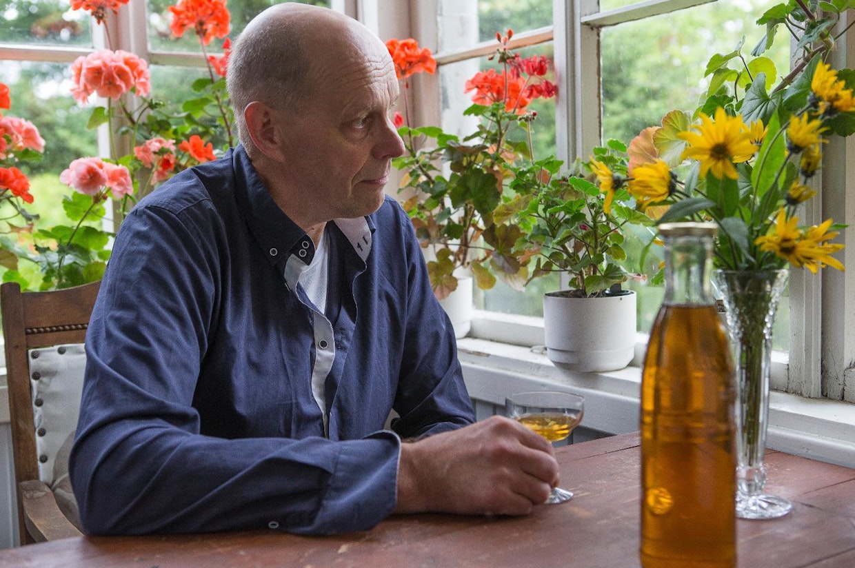 Heikki Mannerin maa-artisokkaliköörissä on kauniin ruskea sävy. Kuva: Jaana Kankaanpää