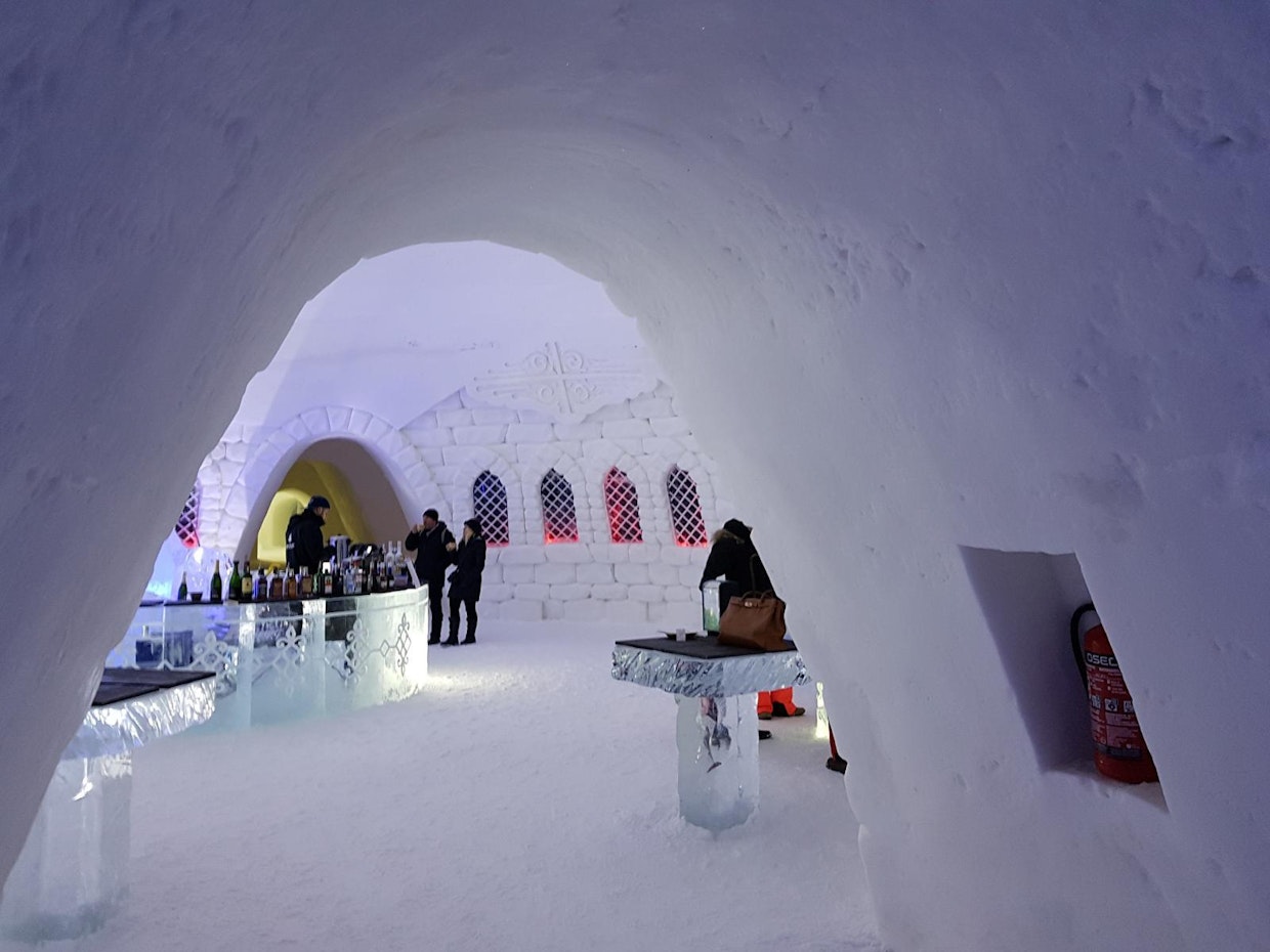 Linnassa on pari suurta kupolia. Ravintolan ylle rakennettu kupoli on tehty lappamalla lunta ison ilmapallon päälle.