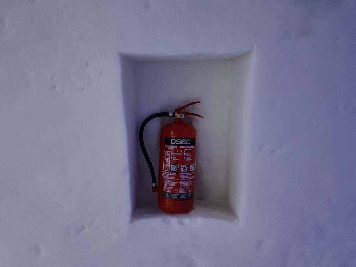 Noin 20 000 neliömetrin hotellin ja ravintoloiden lumisilla käytävillä on vaahtosammuttimia.