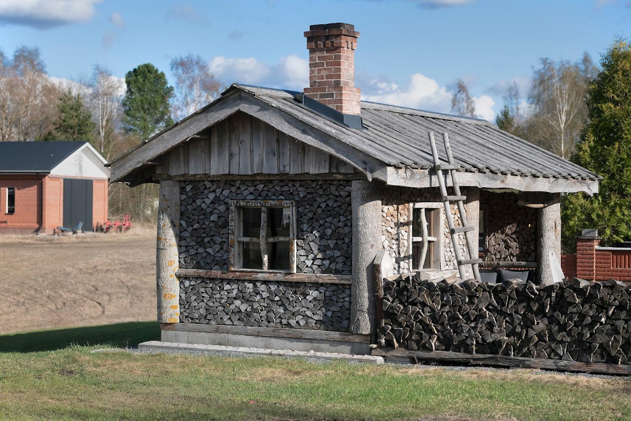 Polttopuita pinotessa syntyi idea omalaatuisesta saunasta – kaikki puutavara saatiin omista metsistä