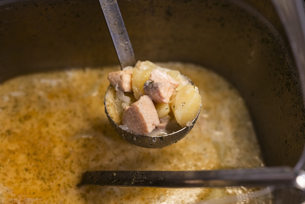 Keskiviikkona Pelkosenniemen koulussa ruokana oli lohikeittoa Sallan Naruskassa kasvatetusta kirjolohesta sadan kilometrin päästä. Kuva: Jouni PorsangerMyös 900 asukkaan Pelkosenniemellä edessä on ensi vuonna ruokapalvelujen kilpailutus.